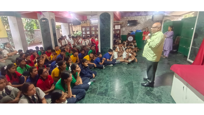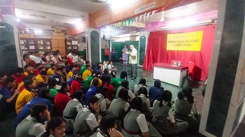 On the occasion of Science Day, Chembur English High School organized an engaging session for students. A resource person, Mr. Chandrakant Sarvagod from Stree Mukti Sangathan was invited who conducted various science experiments on the topic Superstitions vs Science for students of Classes VII, VIII, and IX, making learning interactive and enjoyable. Additionally, a science-based movie screening was arranged for students of Classes V and VI to enhance their interest in science.
